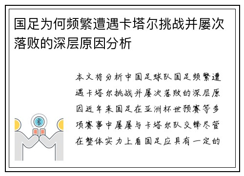 国足为何频繁遭遇卡塔尔挑战并屡次落败的深层原因分析